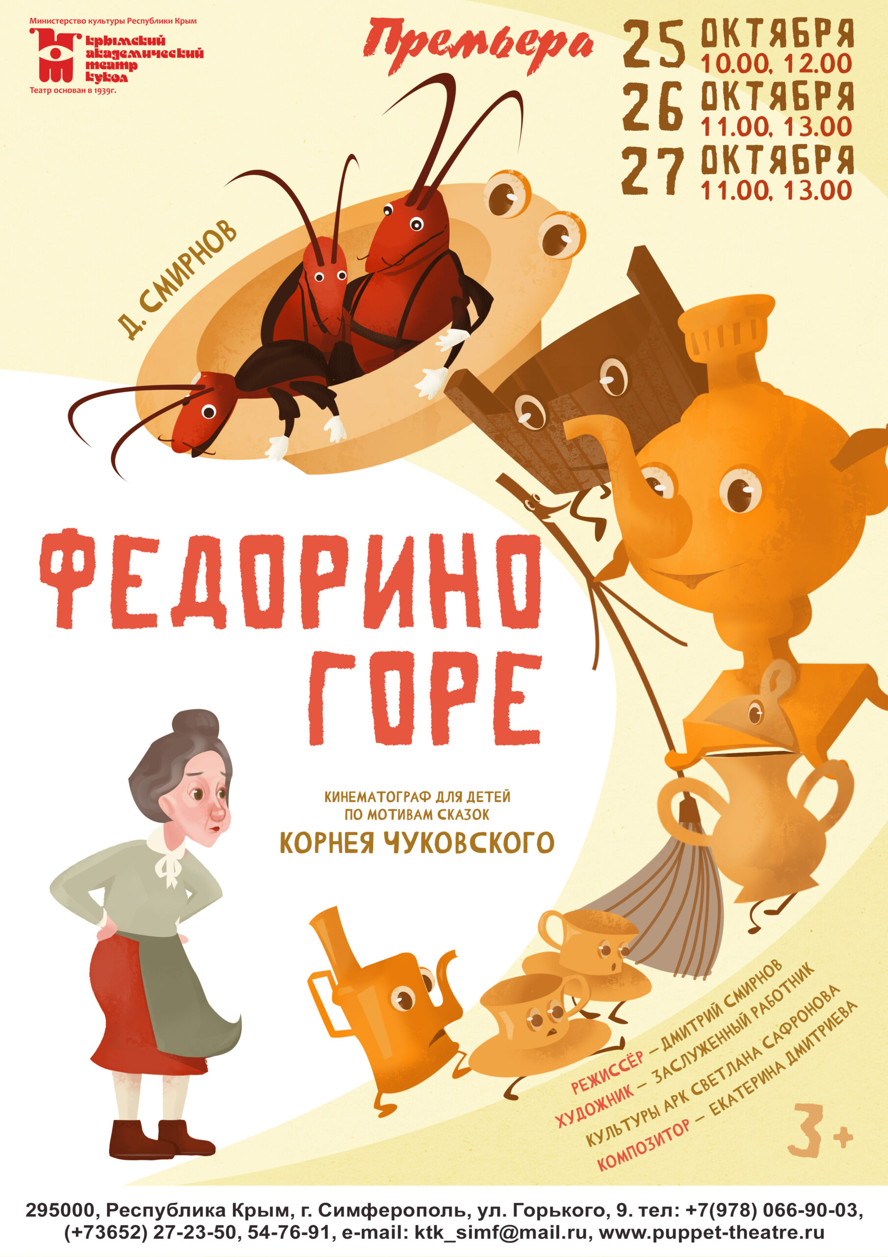 25, 26 и 27 октября в Крымском академическом театре кукол состоится премьера спектакля «Федорино горе» по мотивам сказок Корнея Чуковского.