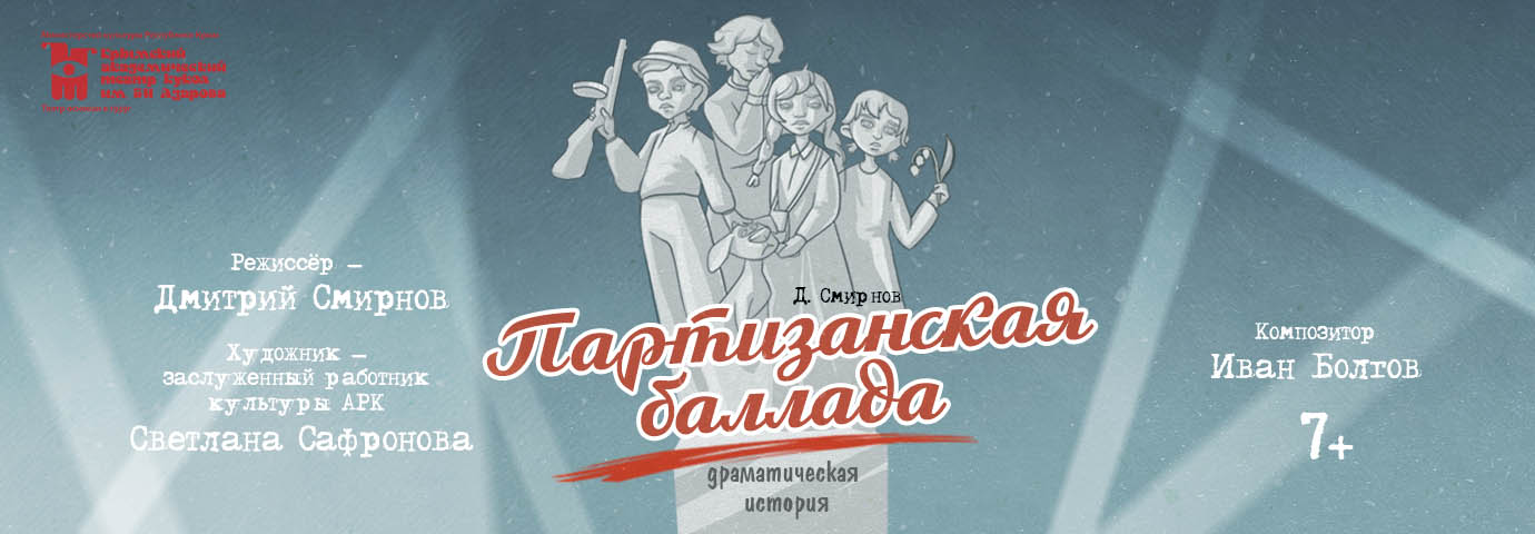«Партизанская баллада» – это спектакль-посвящение, спектакль-память рассказывающий историю борьбы юных партизан-подпольщиков, где нашли свое отражение судьбы существующих героев и авторская фантазия. Авторы показывают мир парнишки Володи, сердце которого пылает действенным желанием приблизить победу. Потеря семьи и немецкая оккупация закалили характер советского мальчика, а вера в свой народ, бесстрашие и героизм помогли ему выплыть из круговорота, подчас, смертельных событий. Окружающий мир жесток: война, марширующая по крымской земле, плач матерей и потухшие глаза сирот…. Здесь, на каждом шагу, поджидает опасность, но не протянуть руку помощи, не исполнить приказ не представляется возможным. Так юные герои – Володя, Люда и Вася встают в один строй с взрослыми в борьбе с врагом.