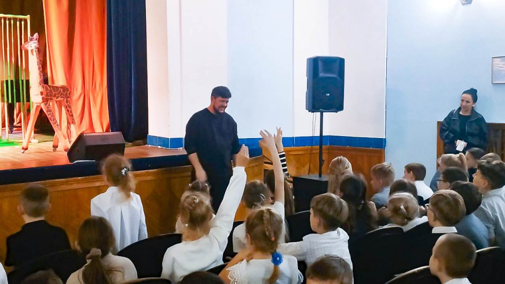 26 ноября участники конкурсного проекта «Мой первый отзыв» (СОШ № 12, 14, 21, гимназия № 9 – педагоги: Байтасова Е. А., Дулама М. Х., Голуб Л. М., Мустафаева А. Д., Соколова Е. А.) вместе с героями постановки «Таинственный Гиппопотам» по пьесе Владимира Лифшица отправились на поиски настоящего друга в необычный мир воображаемой страны Мираликундии … Путешествие – это не только новые встречи и приключения, но и присутствие мужества в трудные моменты испытаний! После просмотра спектакля режиссёр театра Дмитрий Смирнов обратил внимание юных зрителей на «забавные» элементы художественного оформления, на особенности и преимущества мимирующих кукол, на главную цель путешественников!
